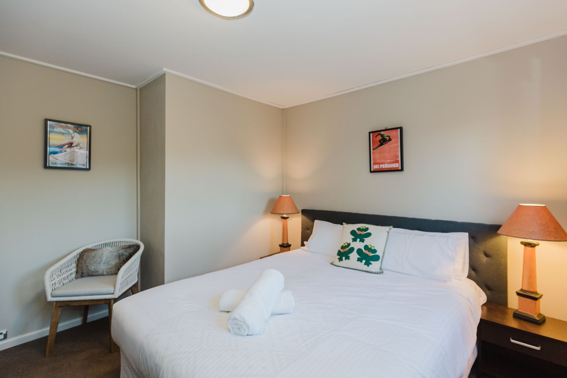 This apartment offers self contained living for four guests across two bedrooms, one with a queen bed and the other with two singles. A fully equipped kitchen, dining area and open lounge is a comfortable size for your small group. Gas heating, a modern bathroom, full laundry and free Wi-F, all let you feel right at home.