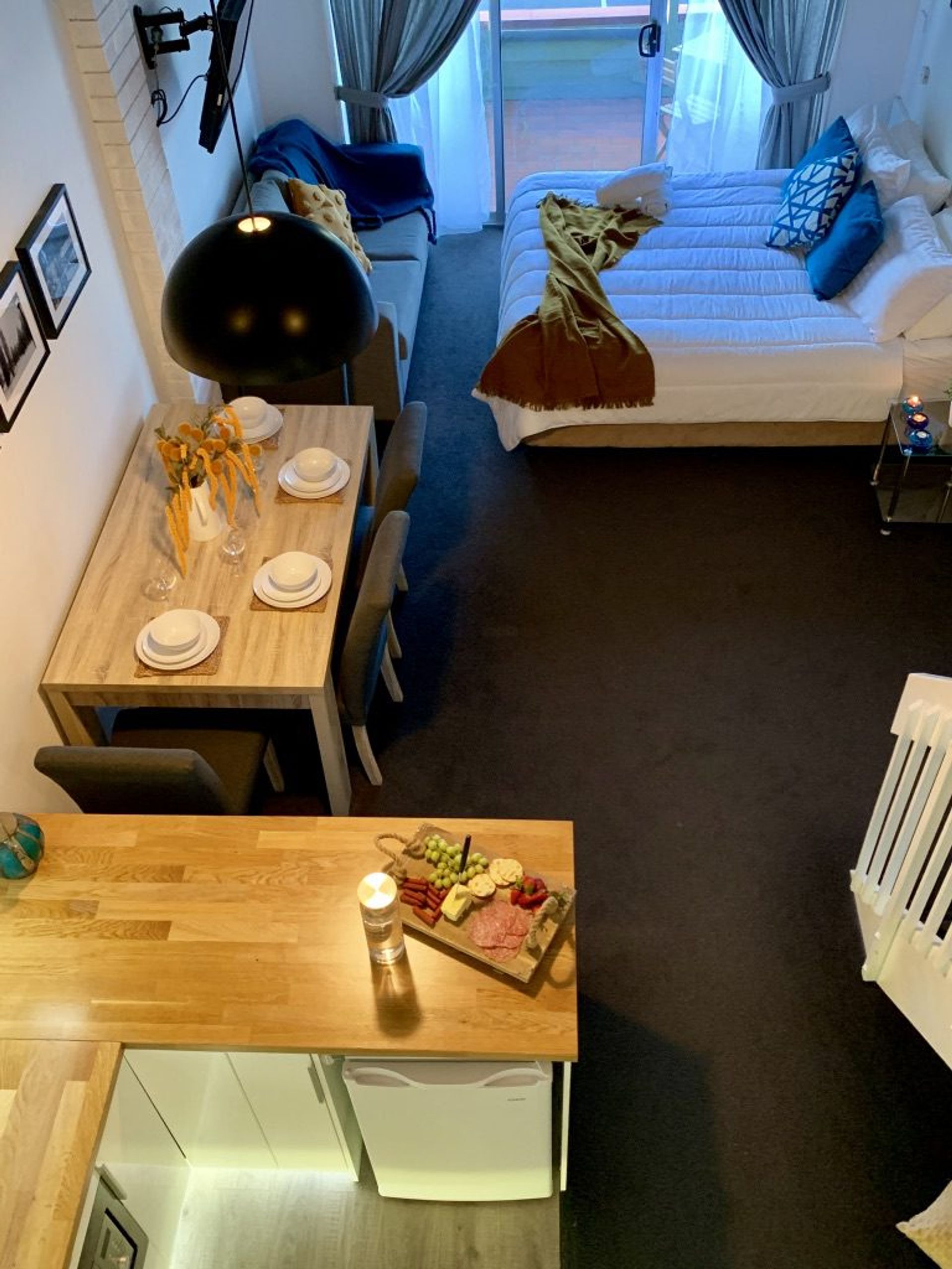 - This is a loft style apartment and the bedroom is open to the living area below