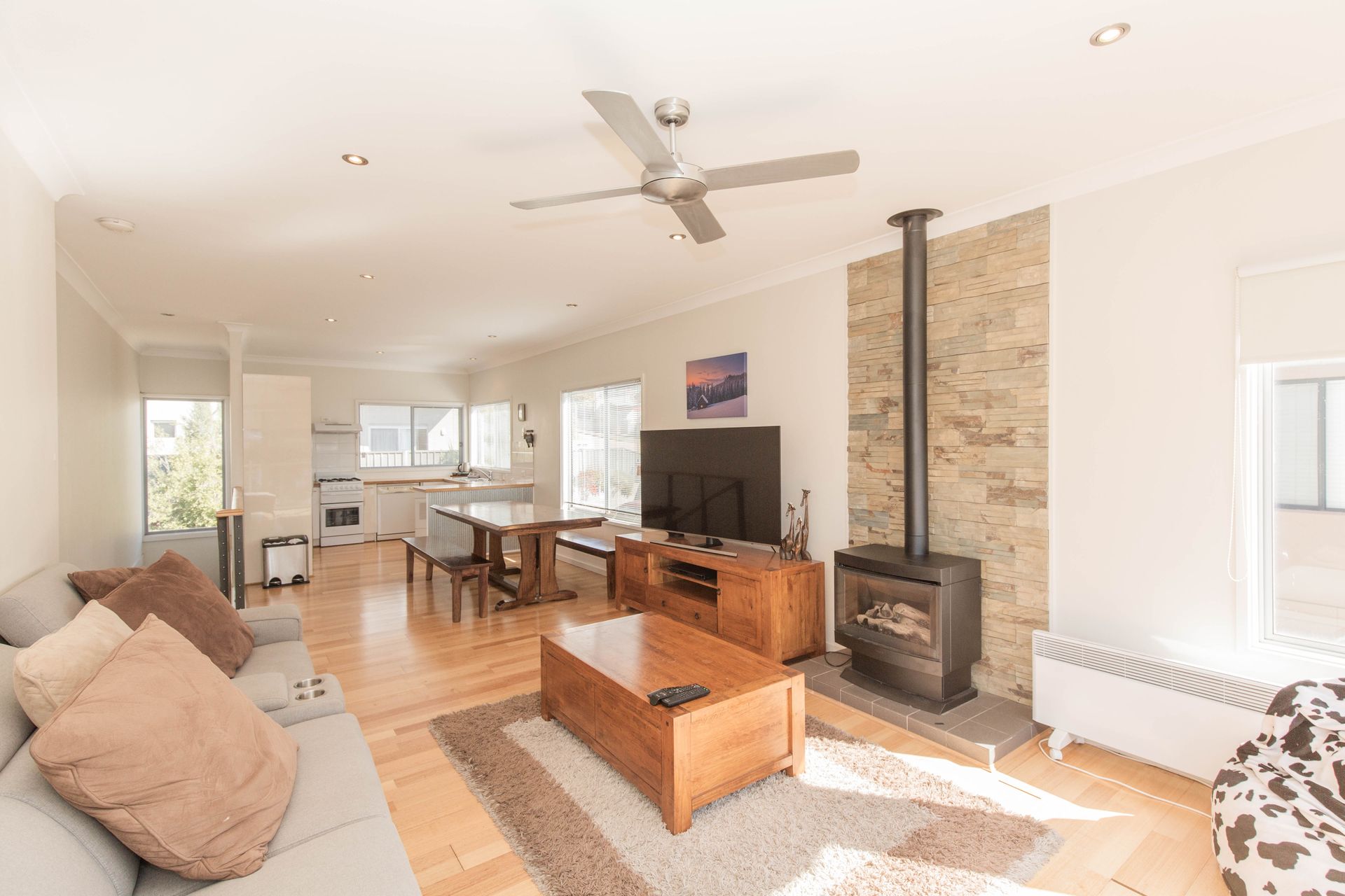 Free Wi-Fi is included along with a gas log fire in the living area and electric heating in all bedrooms will keep you warm during winter and ceiling fans in the upstairs rooms. Parking is available in the single lock up garage with internal access plus single external car space.