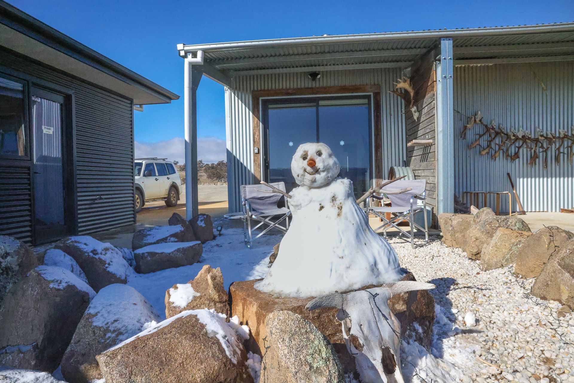 Outside offers an undercover veranda with seating for you to enjoy the serenity. Spectacular views of the main range including Mt's Kosciuszko, Northcote, Townsend, Lee, Club Lake, Perisher, Olympic, Guthega, Blue Cow, Crackenback, Jagangal, Snowy Plains and Kalkite.