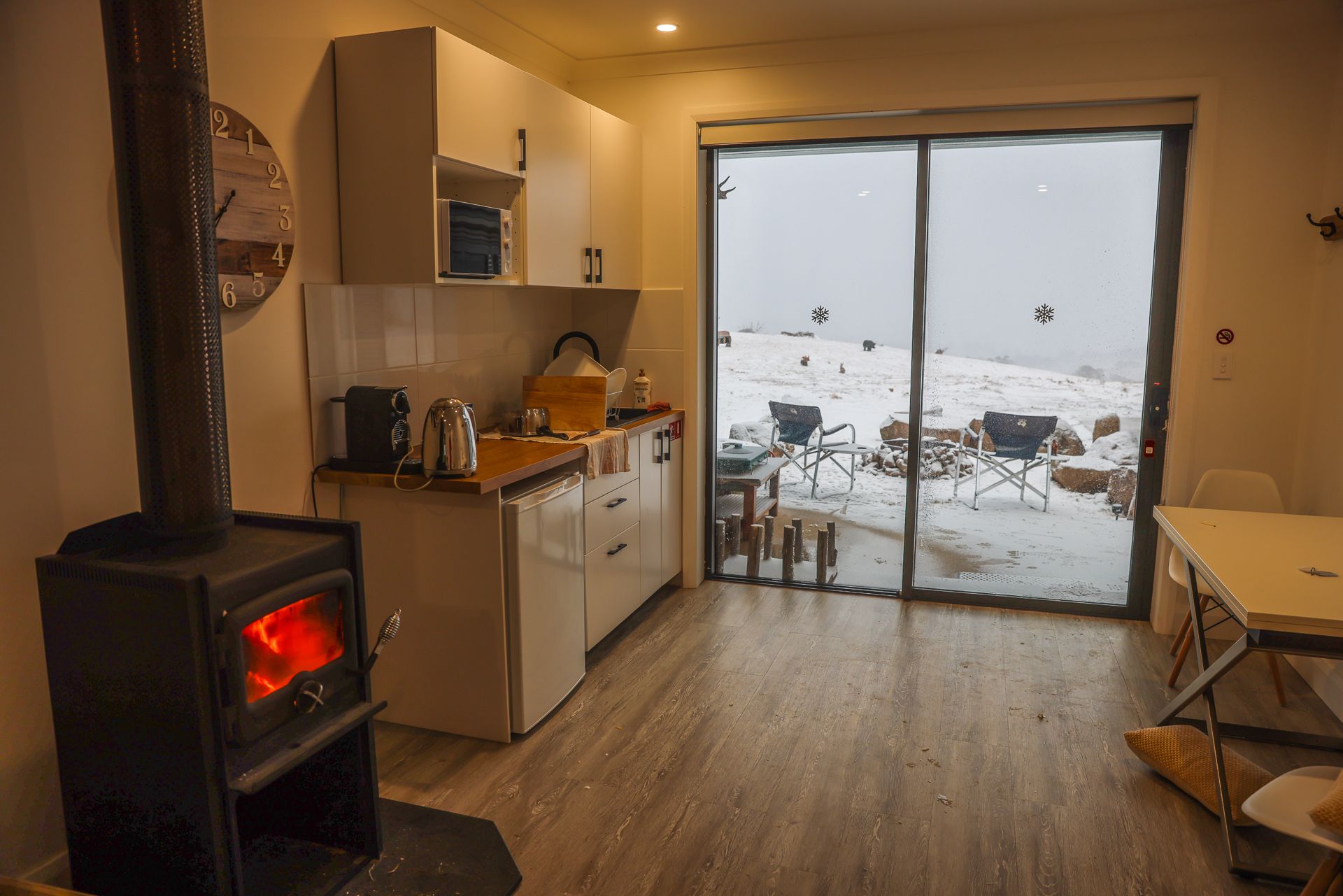 Located on a rural property, this cosy studio has a rustic ambiance with an indoor fireplace, outdoor fire pit and a peaceful Snowy Mountains outlook.