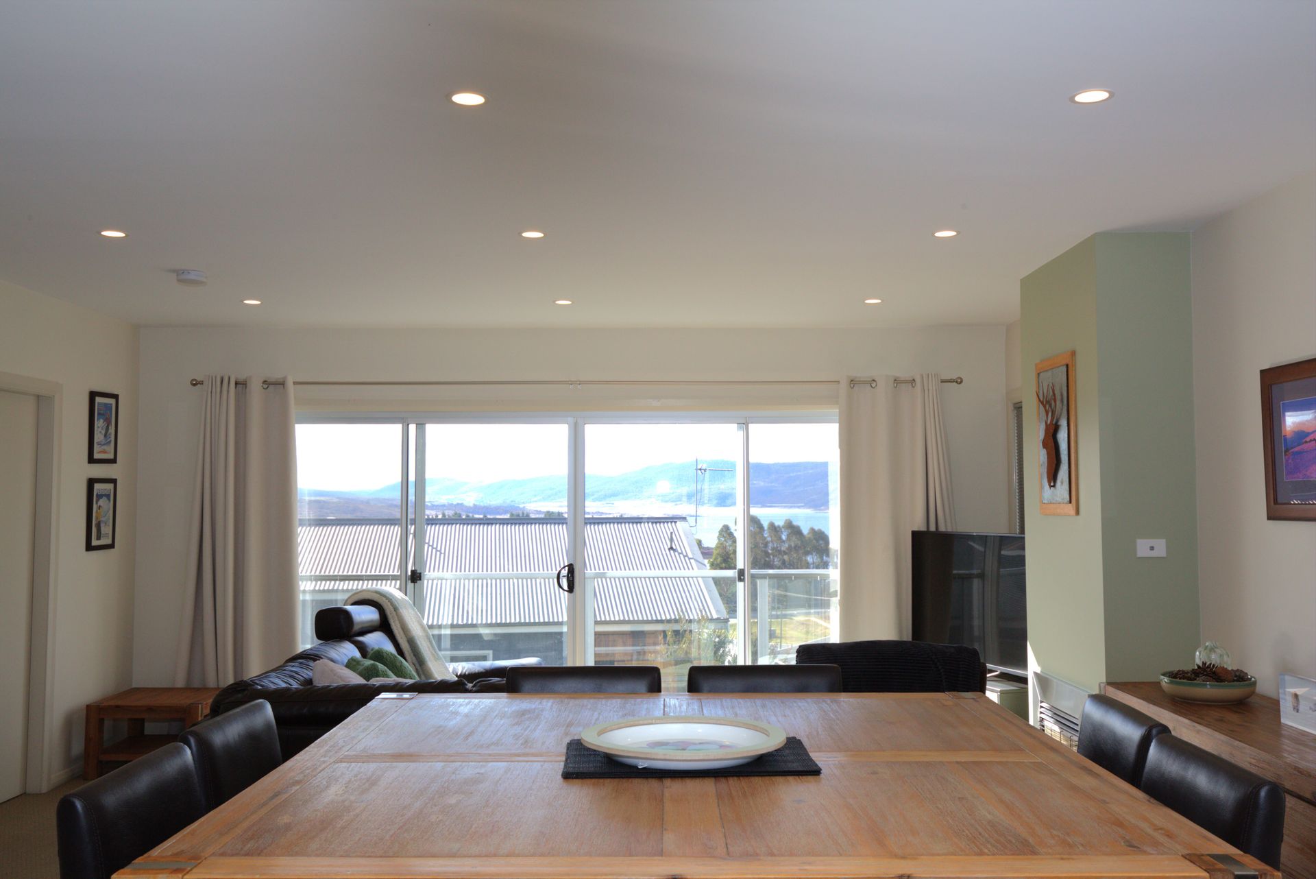 Head upstairs, and you’ll land in an airy open-plan lounge, dining, and kitchen space, all soaked in natural light. Step out onto the balcony and soak in the magic, lake views that honestly stop you in your tracks.