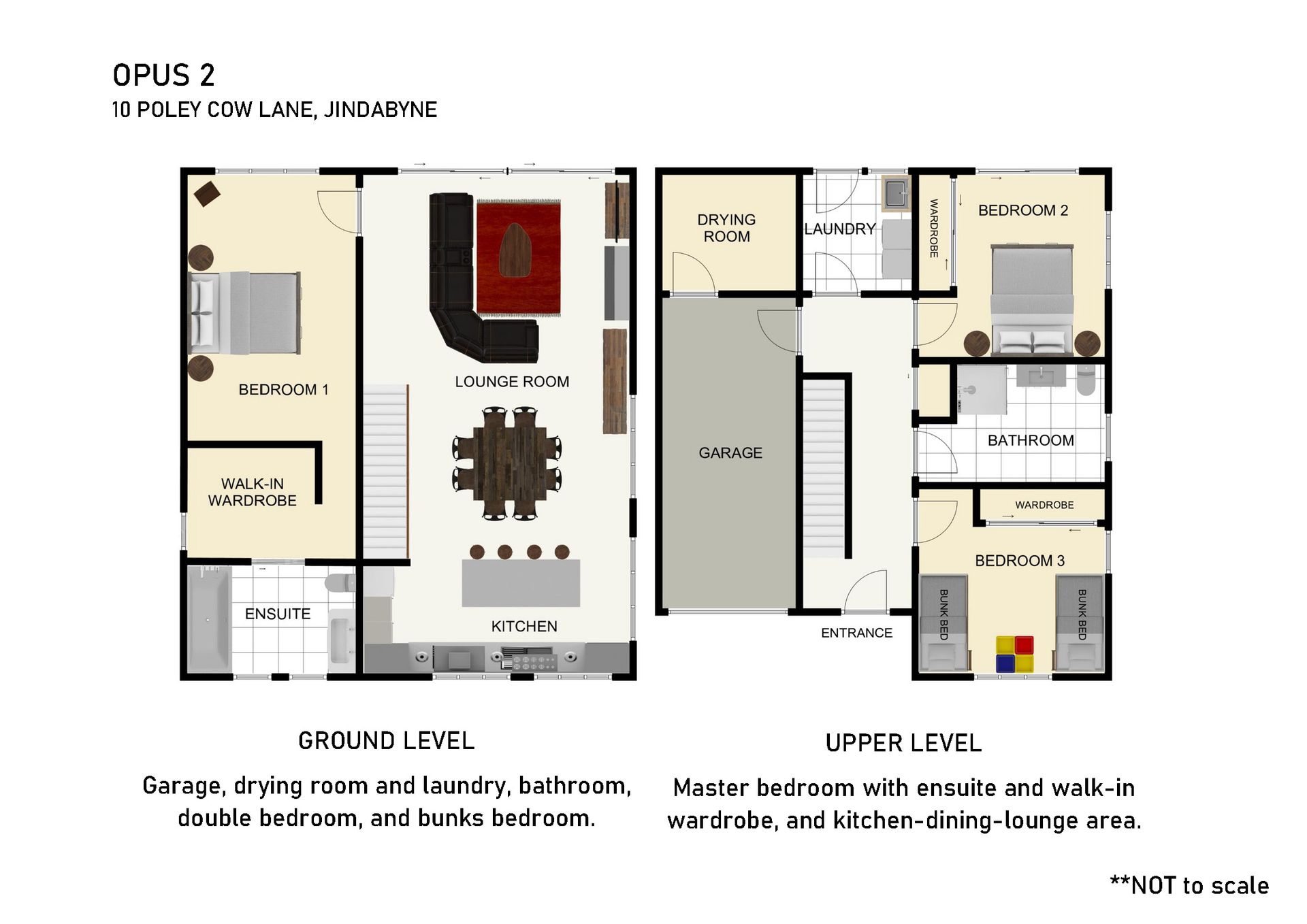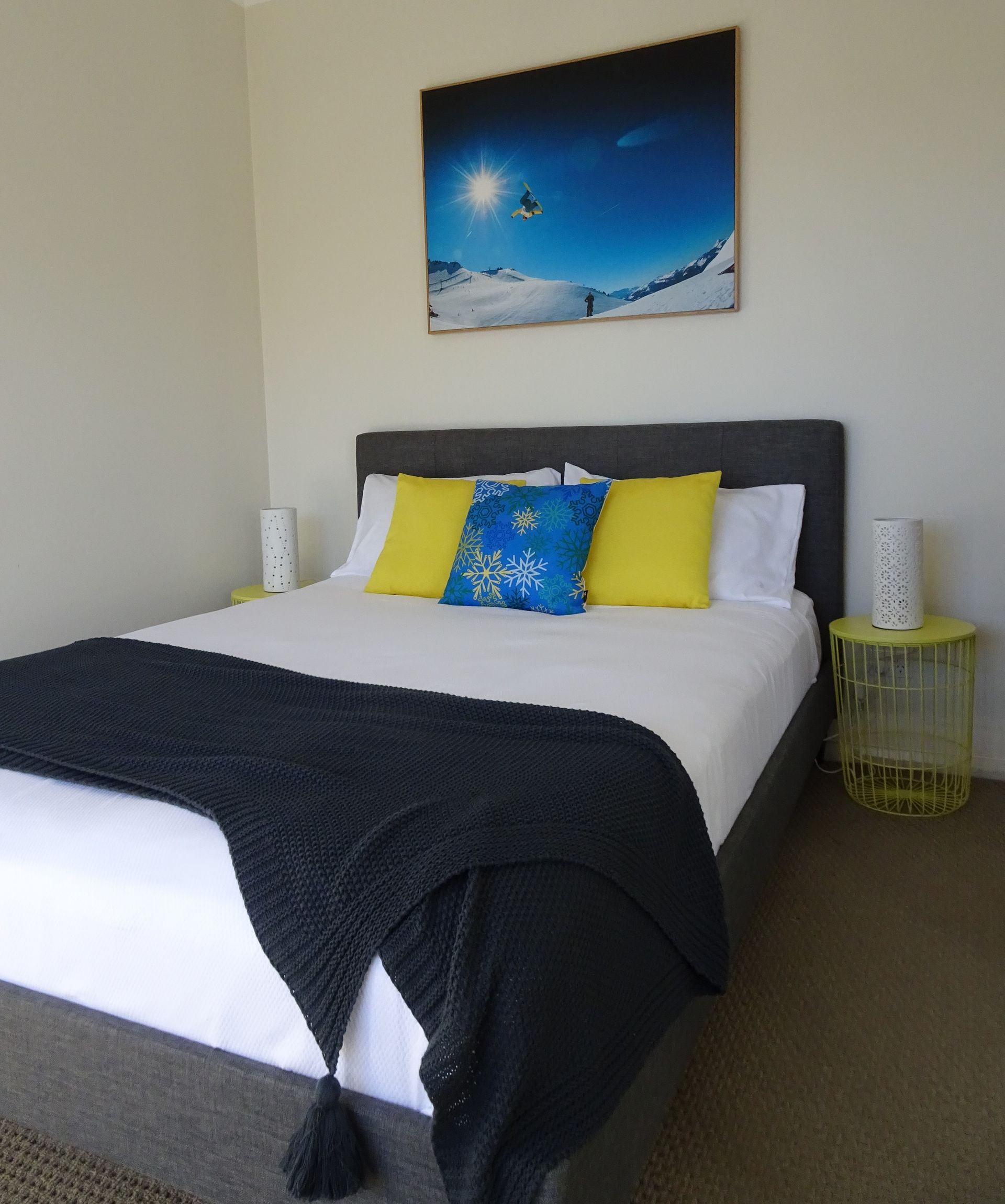 Downstairs, you’ll find one queen bedroom and a second bedroom with two sets of bunks, ideal for kids or friends. There’s internal access from the garage, a handy dry room for your gear, full laundry, and spacious bathroom.