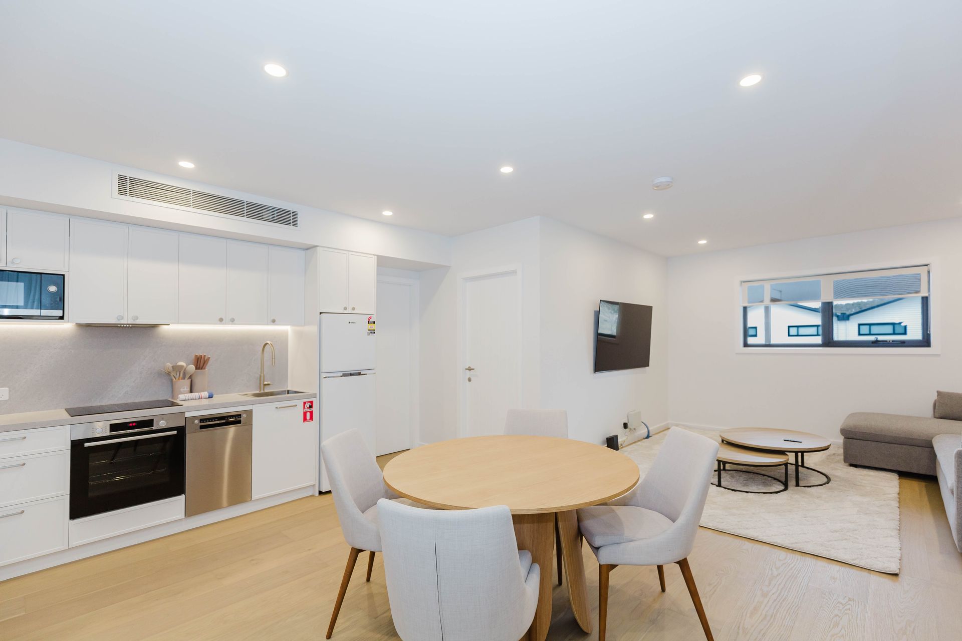 This one bedroom unit offers a queen bed, individually controlled heating/cooling system, fully equipped kitchen with dishwasher and bathroom with underfloor heating and heater towel rails. The open plan living is spacious with dining table, a sofa bed and a smart TV.