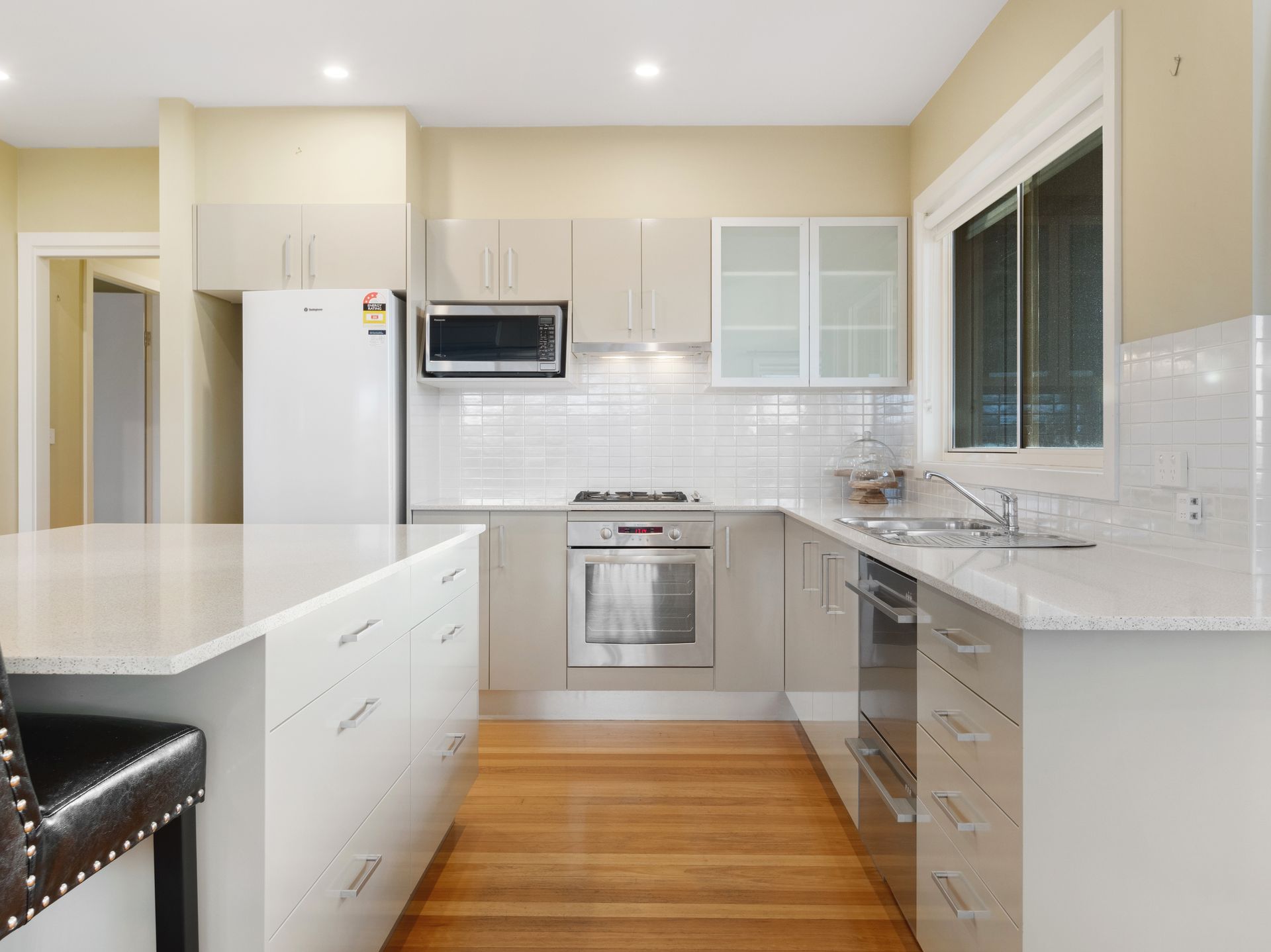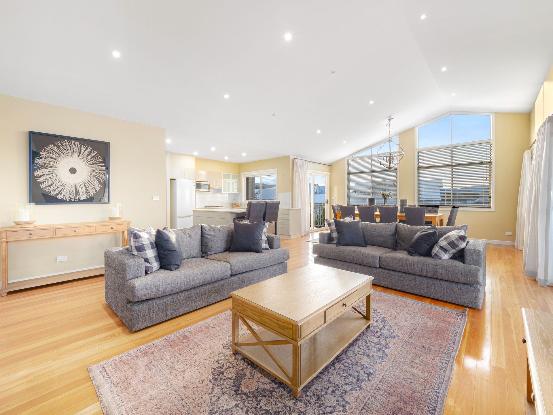 Continuing the social focus of the house upstairs, the open kitchen, living and dining space has an open and airy feel. There are two shared bathrooms as well as two bedrooms with ensuites. The kitchen is the heart of the house and has an island bench, dishwasher, oven, and a range of cookware and appliances. Free Wi-Fi is included for guest use.