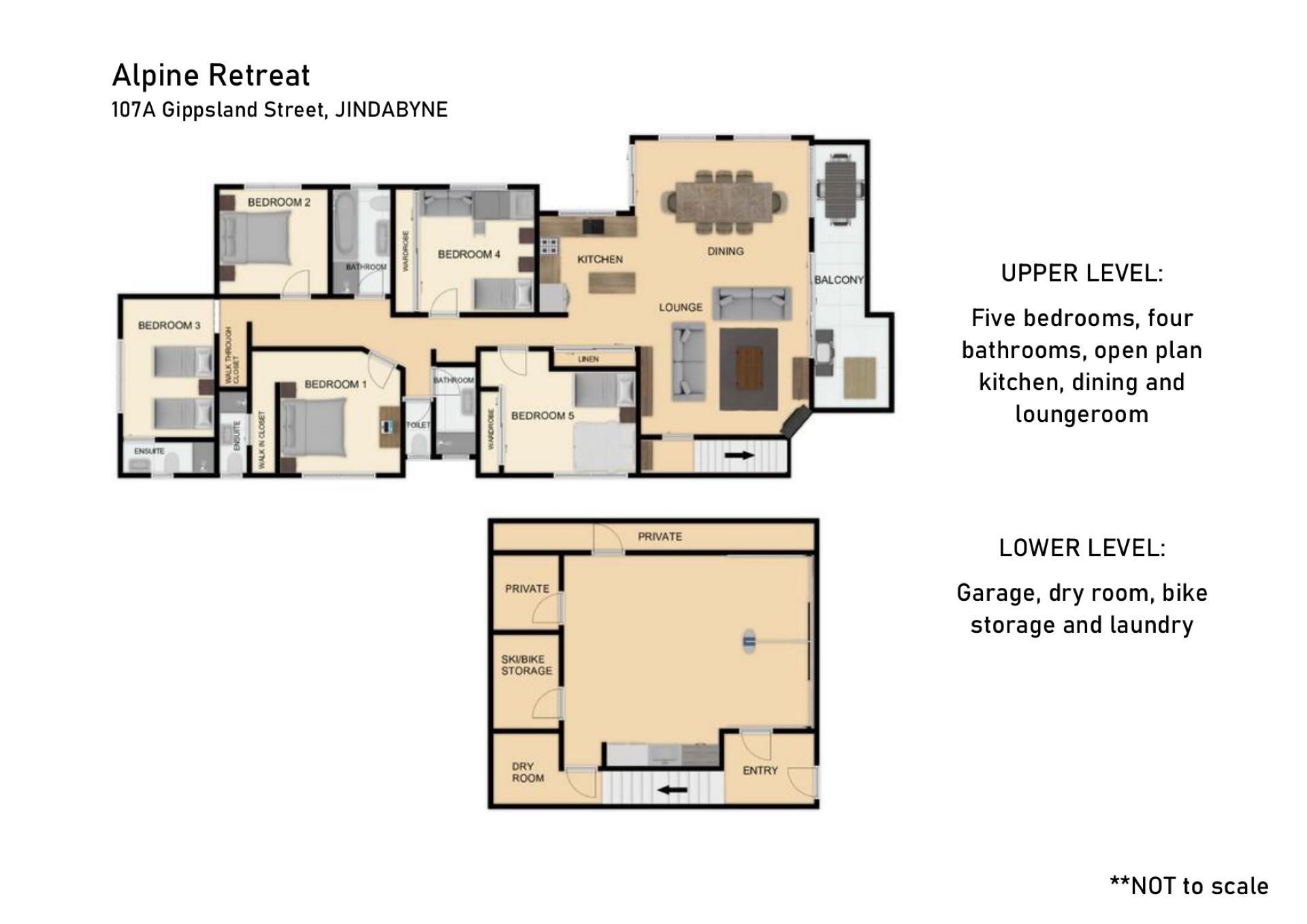With an expansive north-facing balcony with BBQ for entertaining and views across Jindabyne, Alpine Retreat will be the ideal launchpad for adventure in either winter or summer. Five bedrooms, four bathrooms, and room for twelve guests offers flexibility and space on the top level, with a double garage, ski storage, dry room, and plenty of space for bikes in the garage.