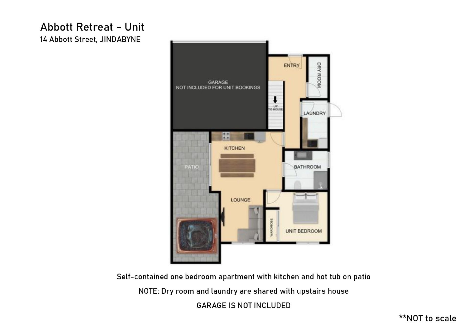 Welcome to the Abbott Retreat Unit. Separate one bedroom apartment with queen bed, built in robes and smart TVs. An open plan lounge with a sofa bed and dining area with modern appliances and furnishings throughout. There is a fully equipped kitchen with dishwasher for your convenience to stay in.