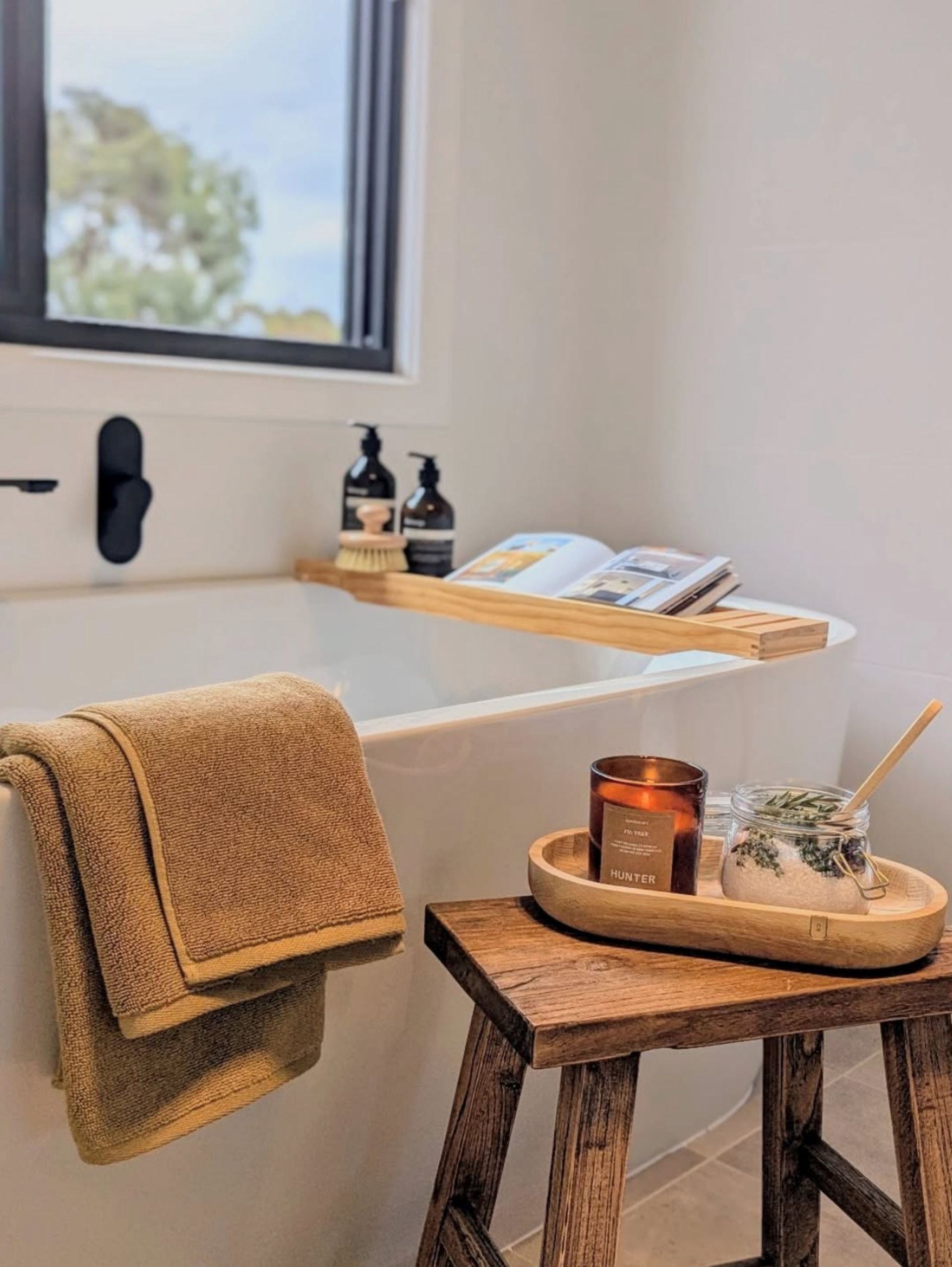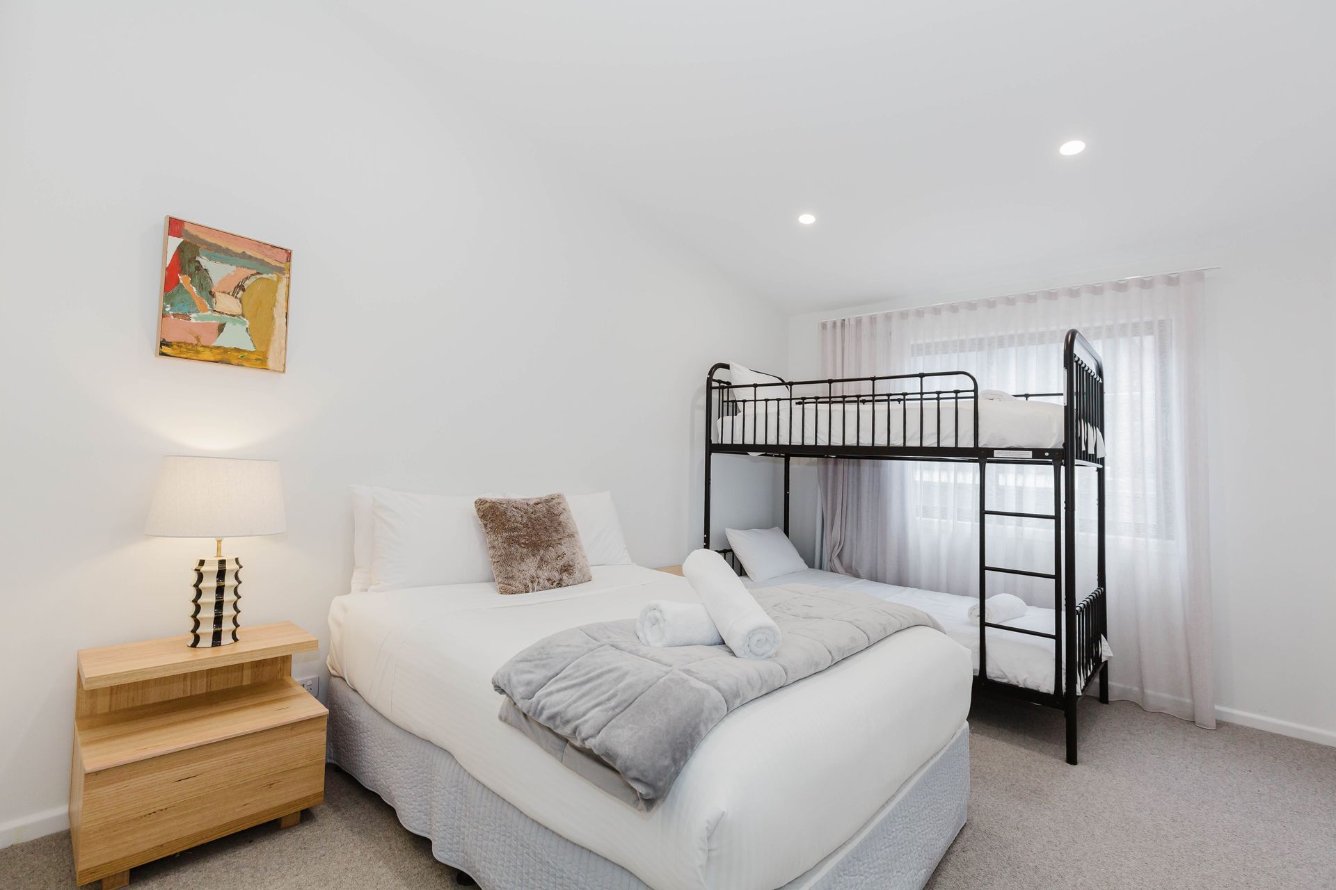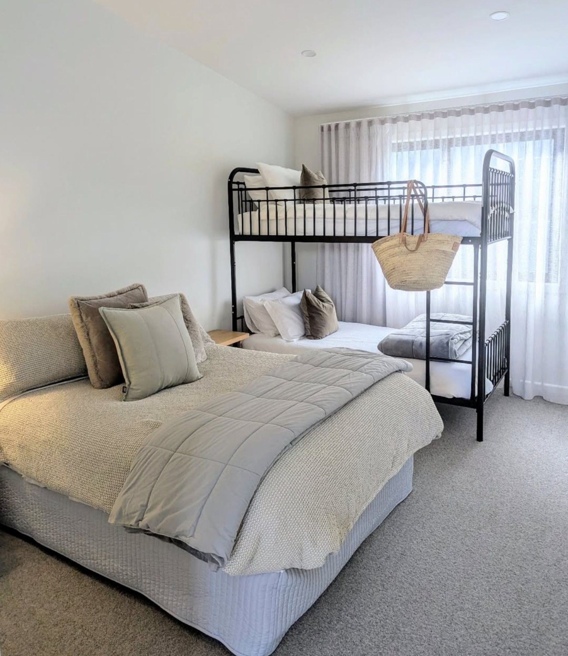 Three generous bedrooms offer luxurious slumber for all. The master features a king bed, walk-in robe, smart TV and ensuite with underfloor heating and heated towel rails. Bedroom two has a double bed and bunks with built-in robe, while bedroom three offers another king bed, built in-robe and TV. The main bathroom provides a serene sanctuary with a shower, large bathtub, heated towel rails, and underfloor heating.