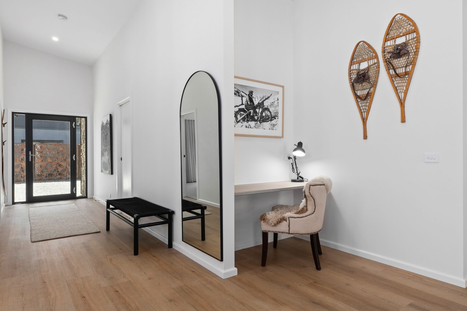 Step into elegance with vaulted ceilings and abundant light. The stunning stonework fireplace offers peaceful views across Jindabyne's hills. Our open-plan living boasts captivating south-east mountain views. Outside, enjoy dining for eight, a fire pit, and a mountain bike washing facility – venture out the back gate and explore walking trails leading to lake views.