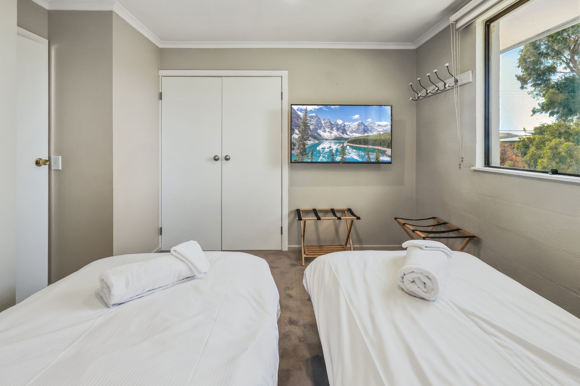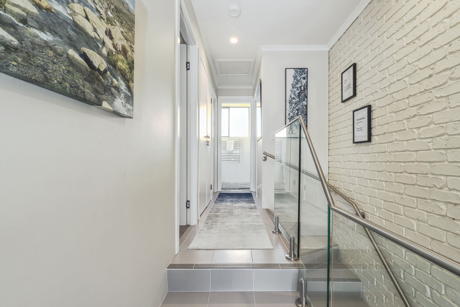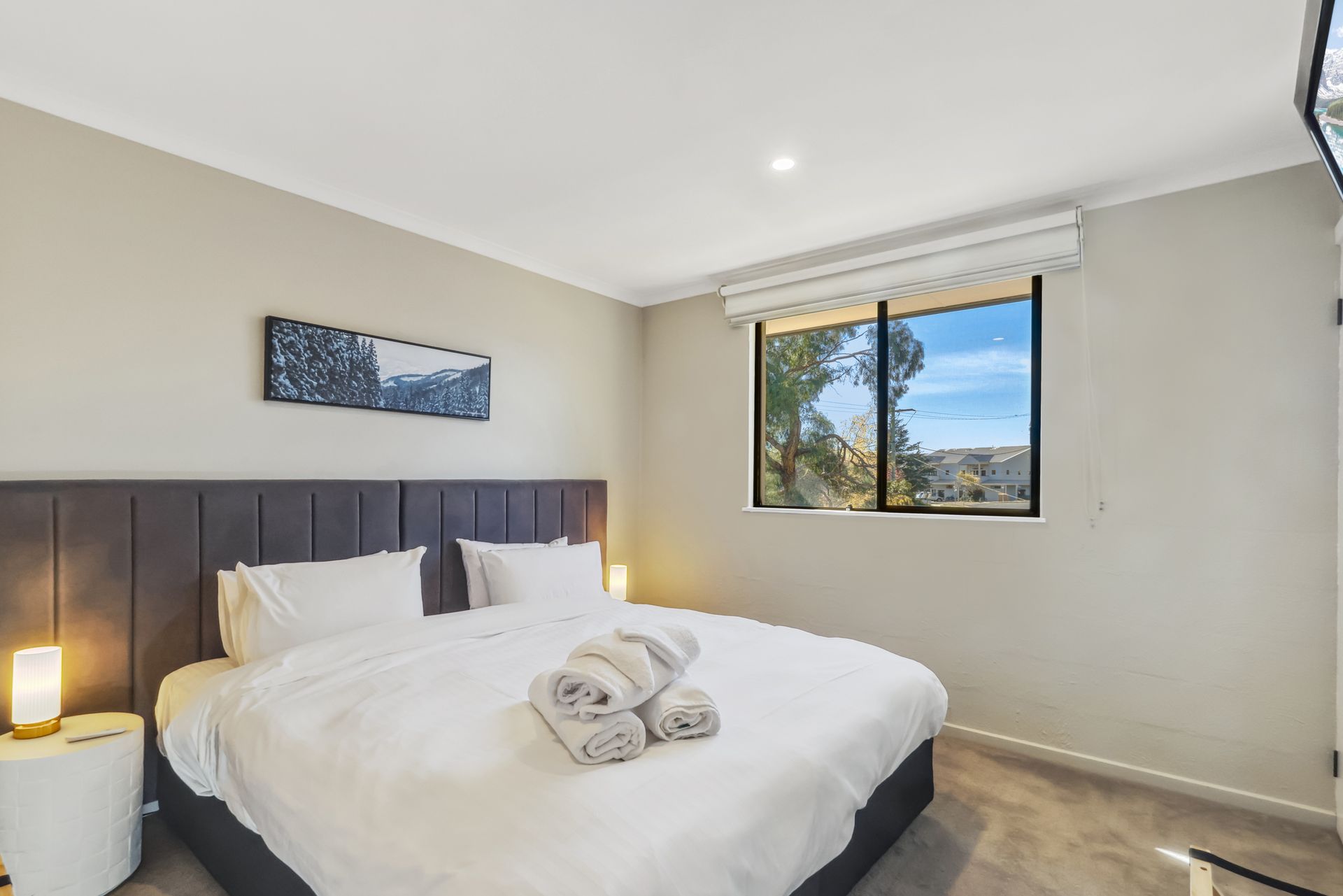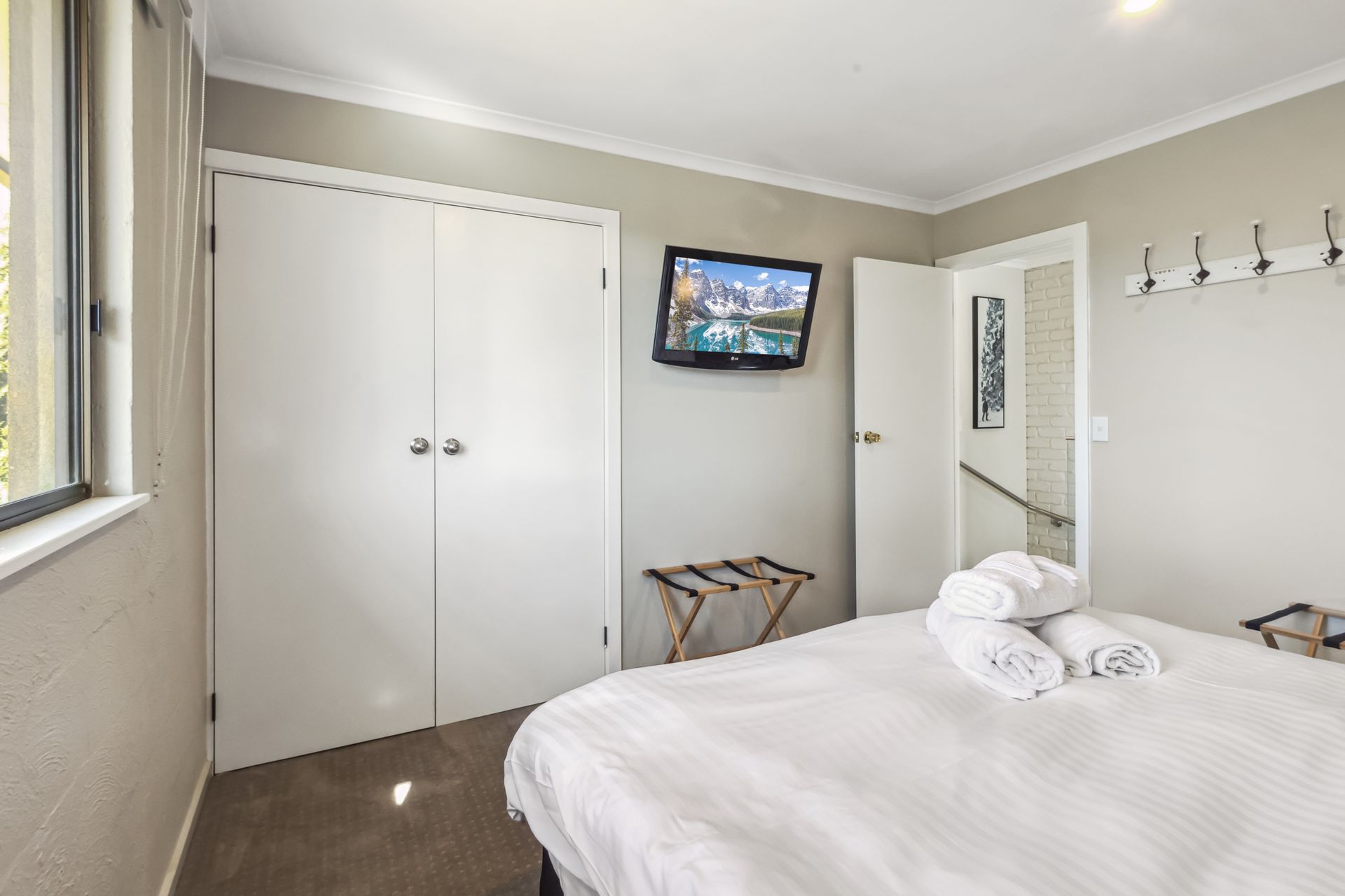 The upper level features 3 spacious bedrooms each with their own TV and wardrobes. The master suite is accompanied by a balcony over looking Jindabyne and has its own ensuite bathroom. Bedroom 2 has two single beds and bedroom 3 is a king split bed (available to be split at the time of booking). The main bathroom is large and airy, with a separate toilet to ensure queuing for the bathroom doesn't halt your day of exploring Jindabyne and surrounds.