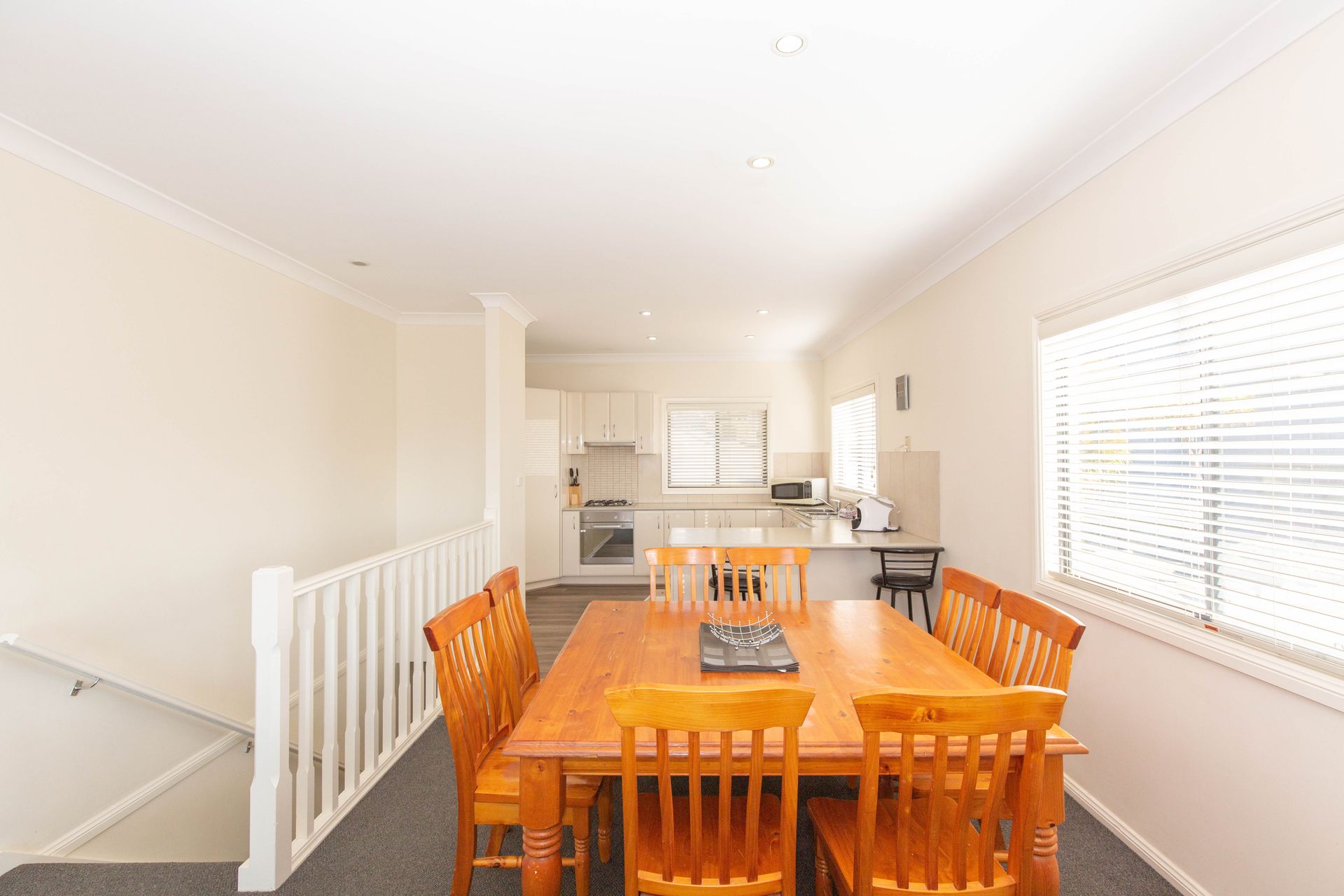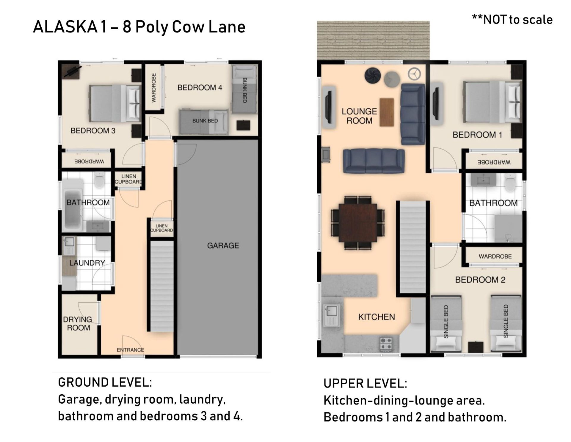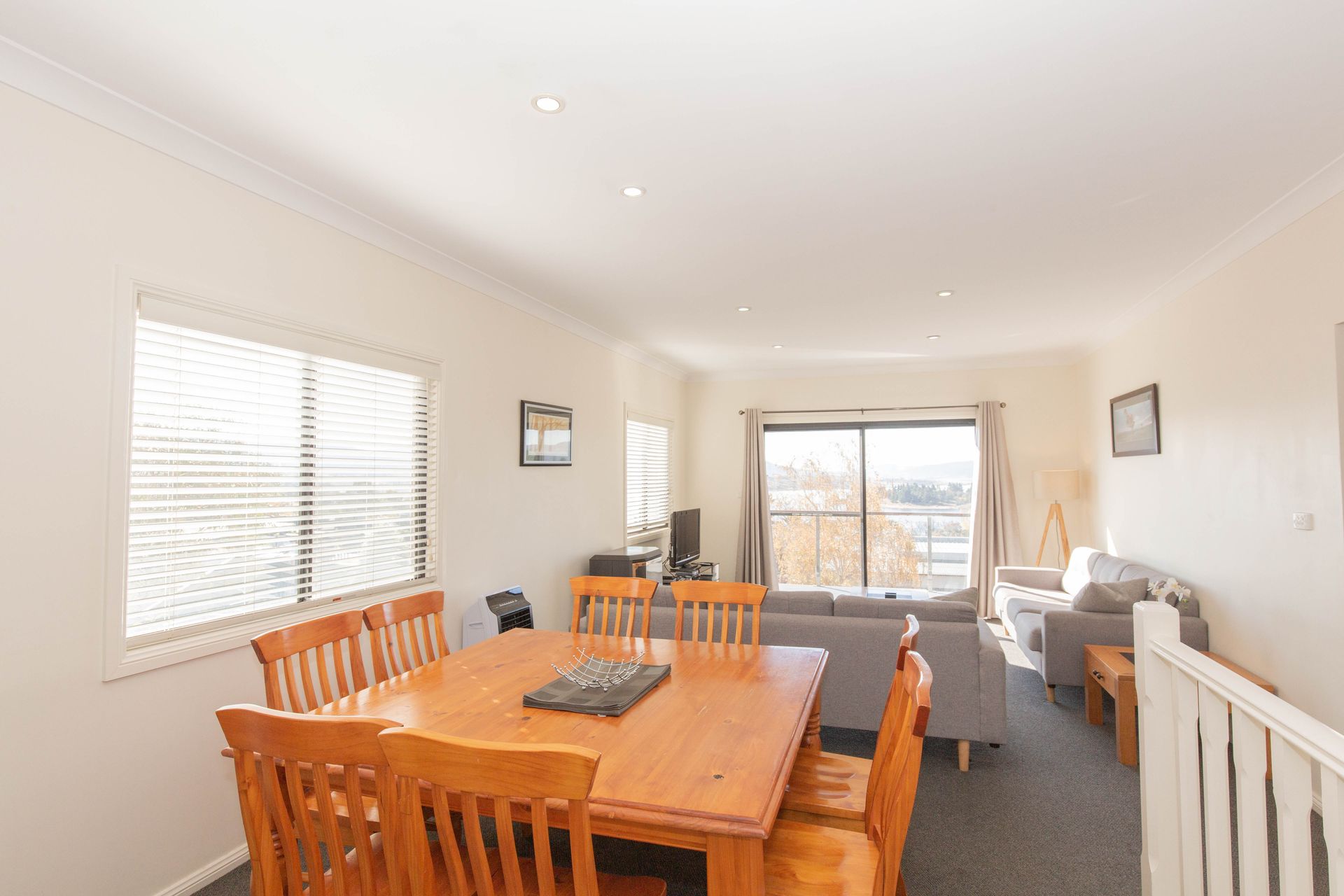 Upstairs, you will find the open plan kitchen, living and loungeroom that leads onto the balcony with lake views, two bedrooms consisting of one queen and two singles and a bathroom. Downstairs the two bedrooms have one queen plus two sets of bunks. The property also offers free Wi-Fi, a drying room, underfloor heating in both bathrooms, single lock up garage and two off street parking spots.