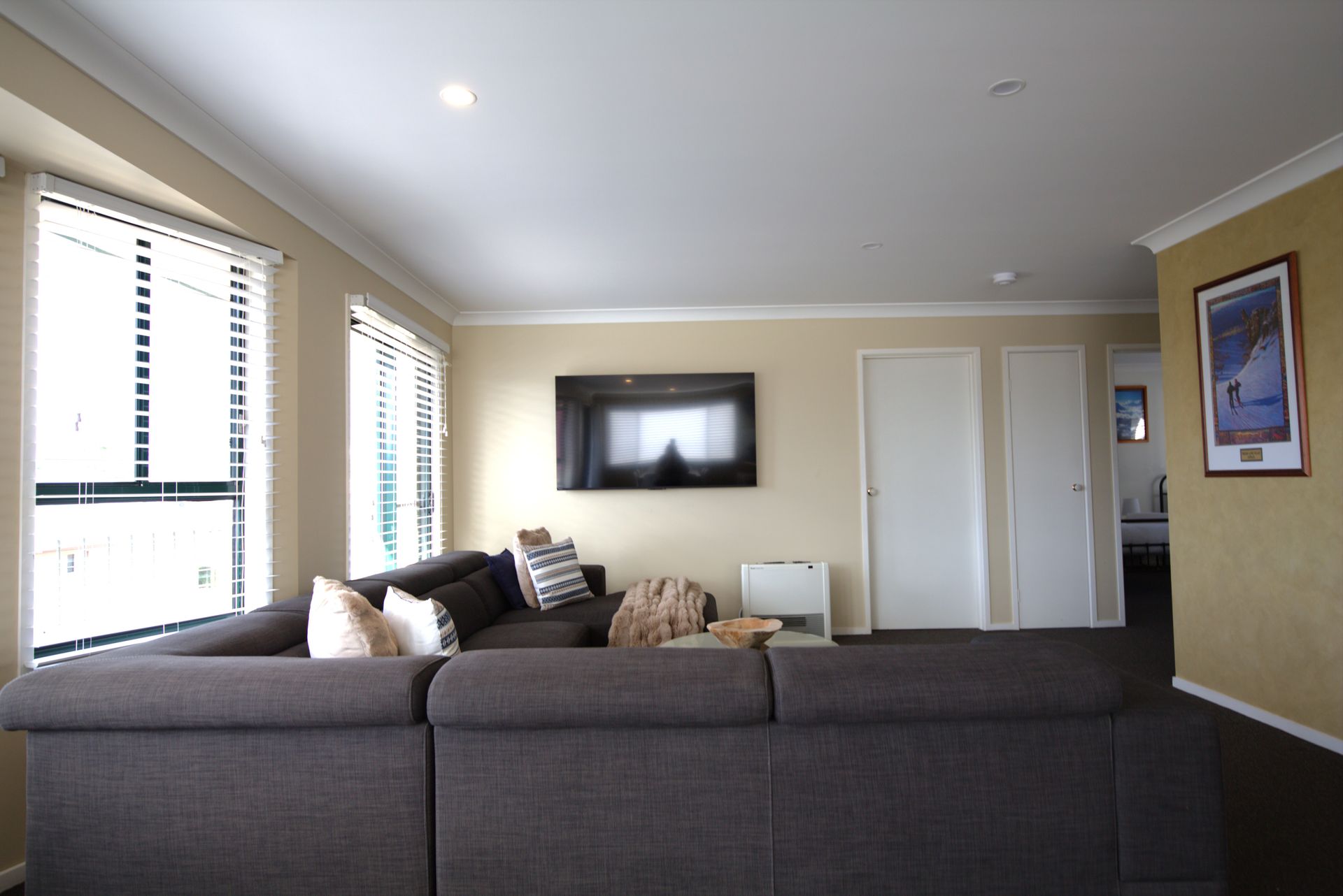 Chalet De Neige is a two story four bedroom town house, sleeping ten guests, with uninterrupted magnificent views of Lake Jindabyne.