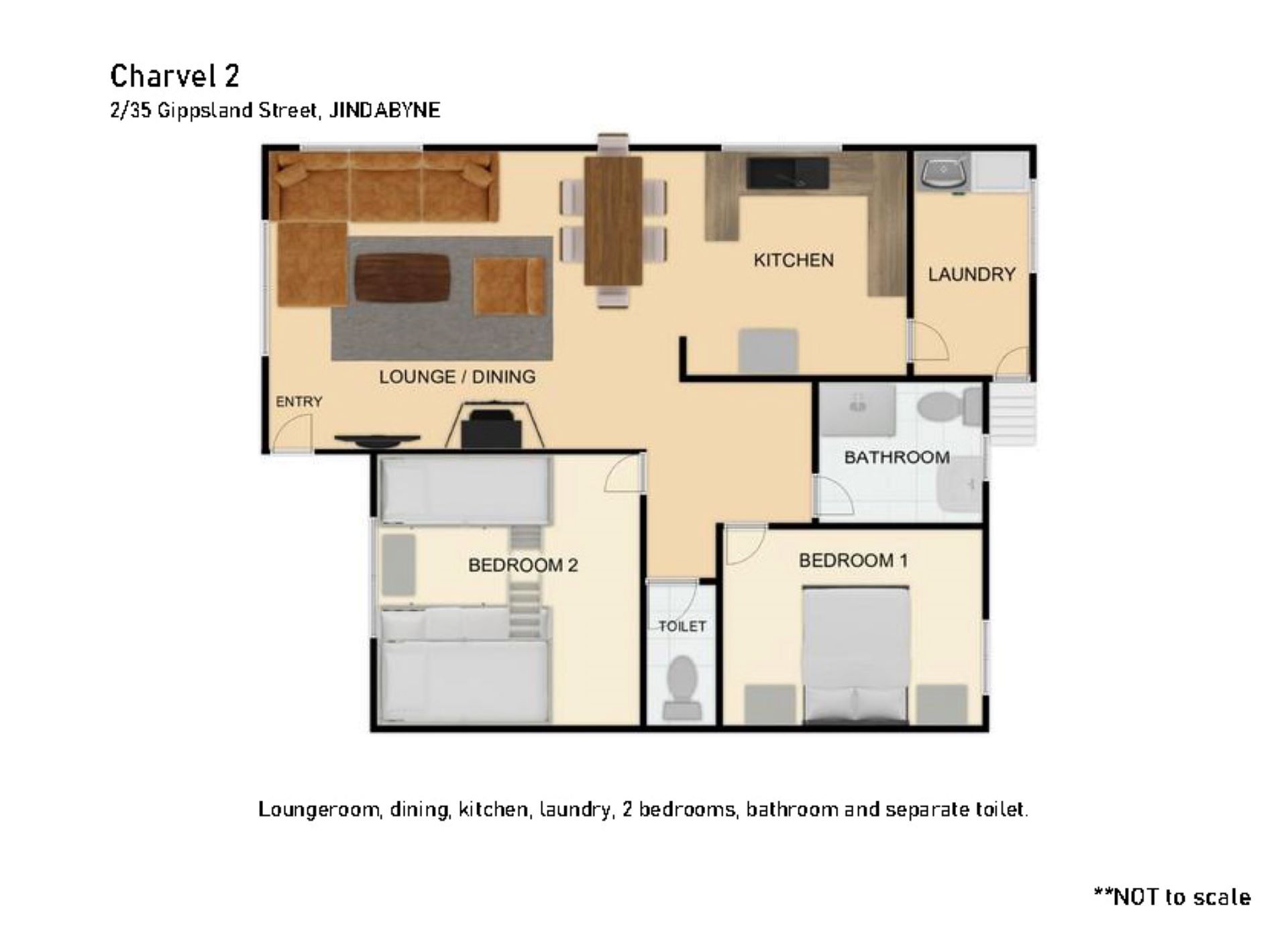 Charvel 2 is a two bedroom, one bathroom unit close to the centre of Jindabyne on Gippsland Street. The main bedrooms has
