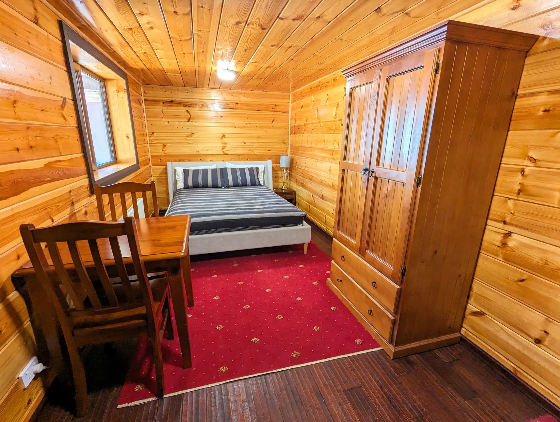 Below the garage and external from the main house, you will find the Bungalow bedroom with a queen bed.