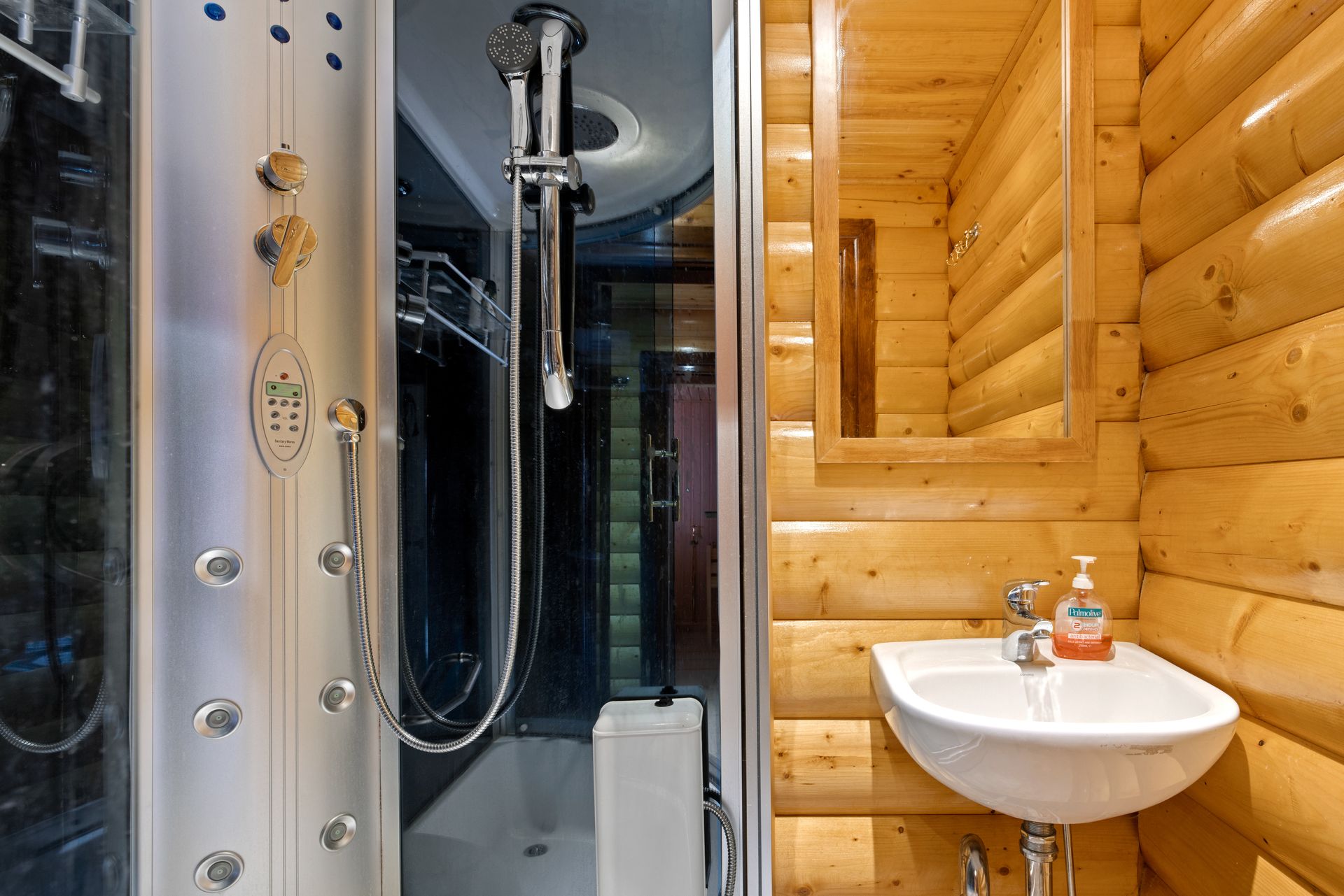To the left of the driveway, you will be greeted with the cosy Cabin, that comes fully equipped with a queen bedroom, kitchenette that includes a dishwasher, electric heating and an ensuite that includes a jet-shower and a toilet. The Cabin is also equipped with a new electric sauna to soothe the muscles after a long day on the mountain.