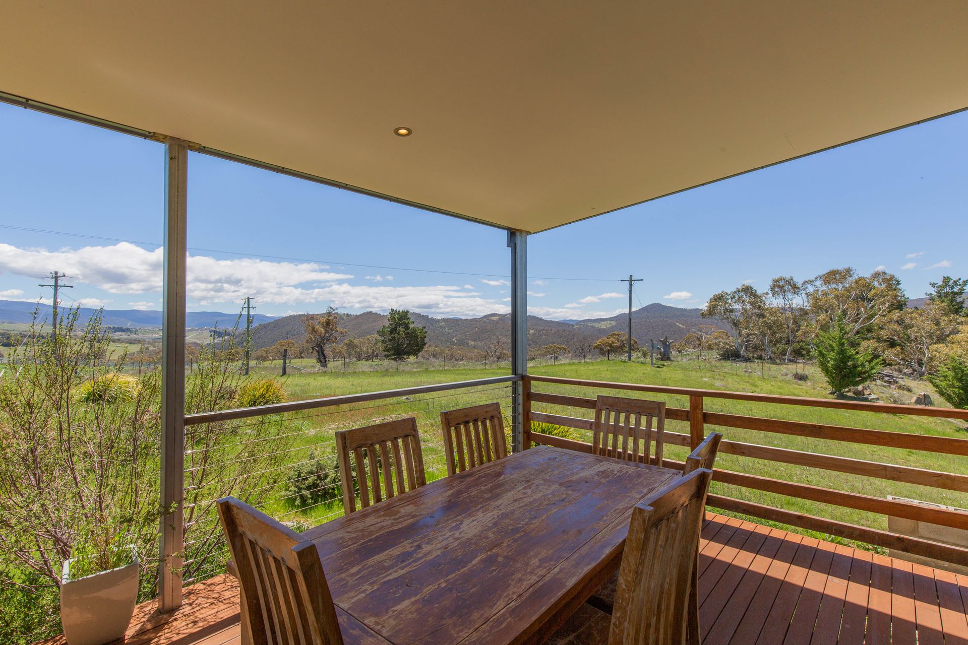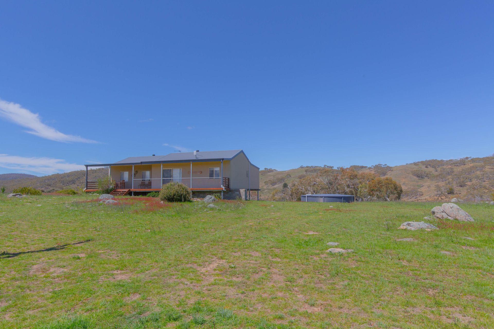 One room features a King Bed with wall-mounted TV and ensuite, two rooms feature queen beds, with the other two featuring a set of bunks each. The kitchen is well equipped and there's a BBQ and outdoor setting for those warm summer nights. There are 2 TV's, one with DVD player, free Wi-Fi and Foxtel are provided and an expansive yard for the kids to play in. Keep warm in winter with an reverse cycle air conditioner or next to the wood combustion fire (wood not included) while enjoying the beautiful sunsets over the tranquil Snowies. There is also electric heating throughout, full laundry and a beautiful front porch.