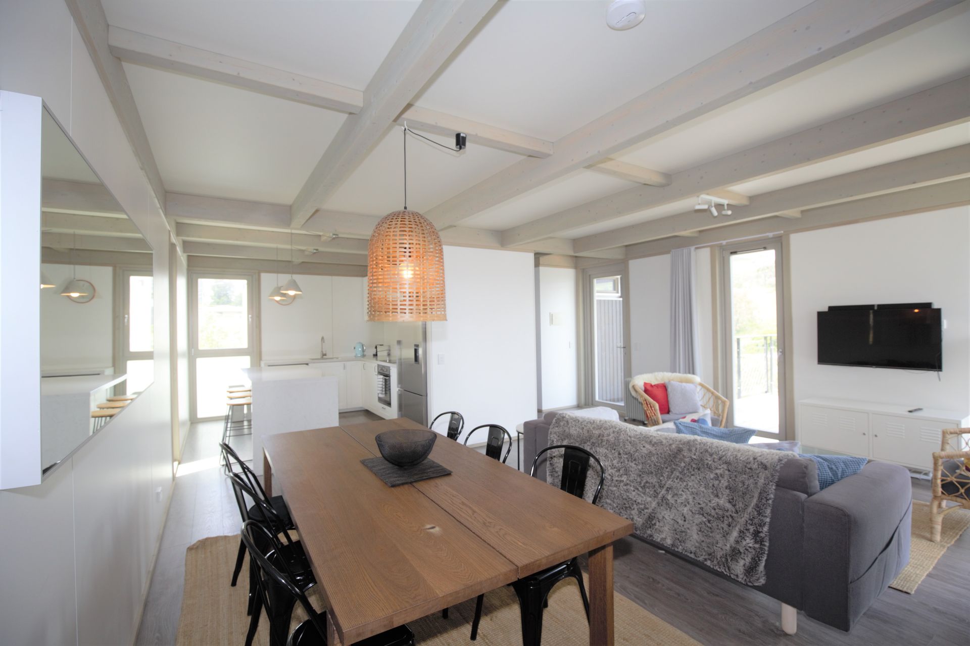 Jindy Haus is a brand new, European house offering some spectacular views. The house is all on a single level that opens up on a large deck, perfect for taking in the beautiful sunsets over the lake.
