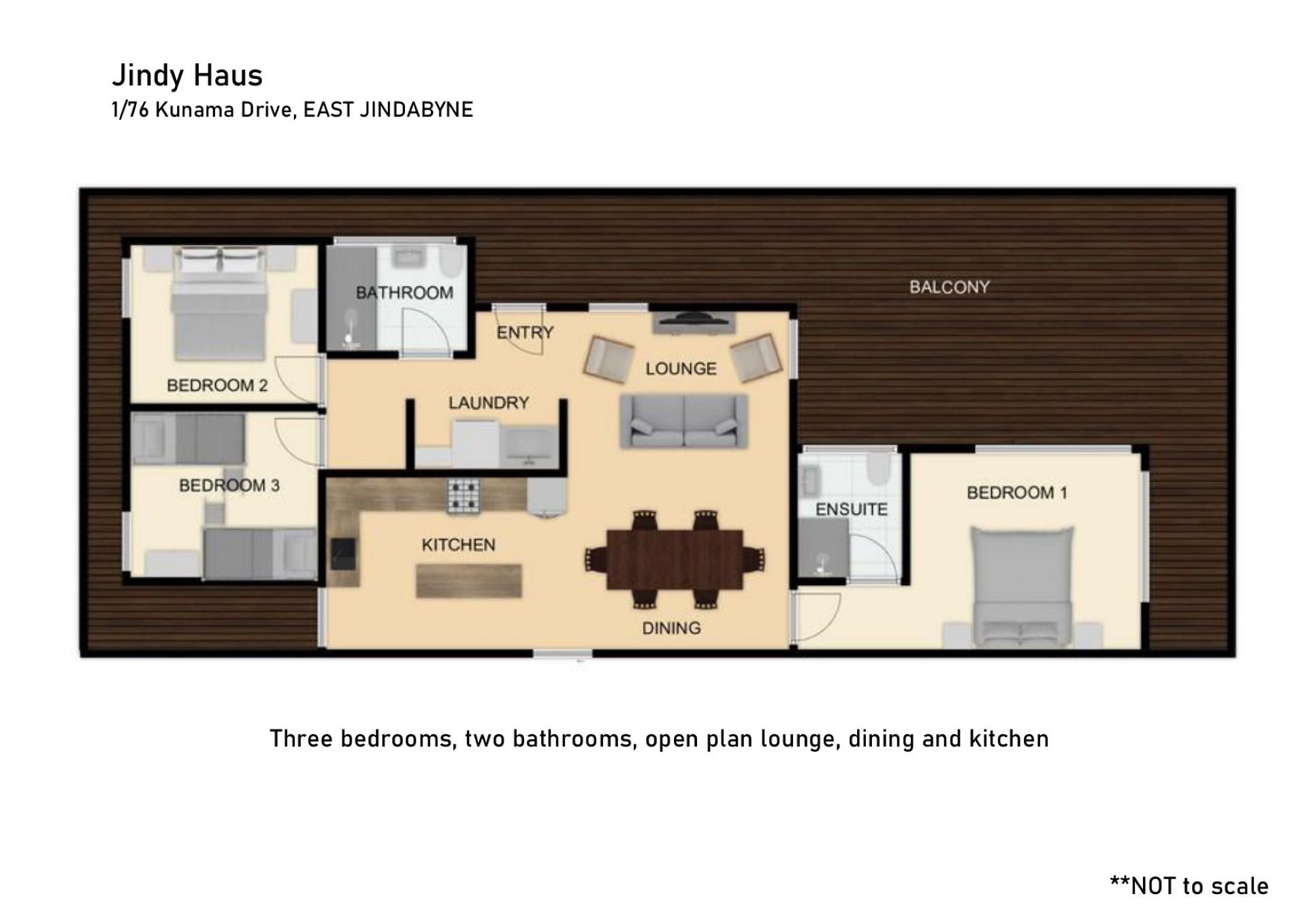The house has three bedrooms that all have their own private doors that opens onto the deck. The main offering a queen bed and ensuite, bedroom two with queen bed and bedroom three with two sets of bunks. The kitchen is very well equipped with everything you could need, it leads to the open dining and lounge area with reverse cycle air-conditioning, smart TV, wifi and stylish suspended ethanol fire place for the perfect ambiance of a trip to the mountains.