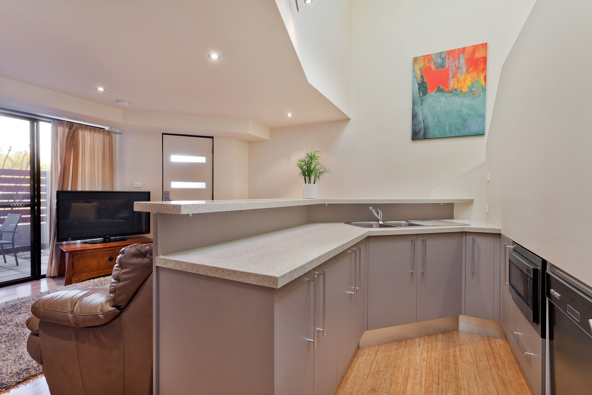 Modern two bedroom, two bath townhouse perfect for small family.