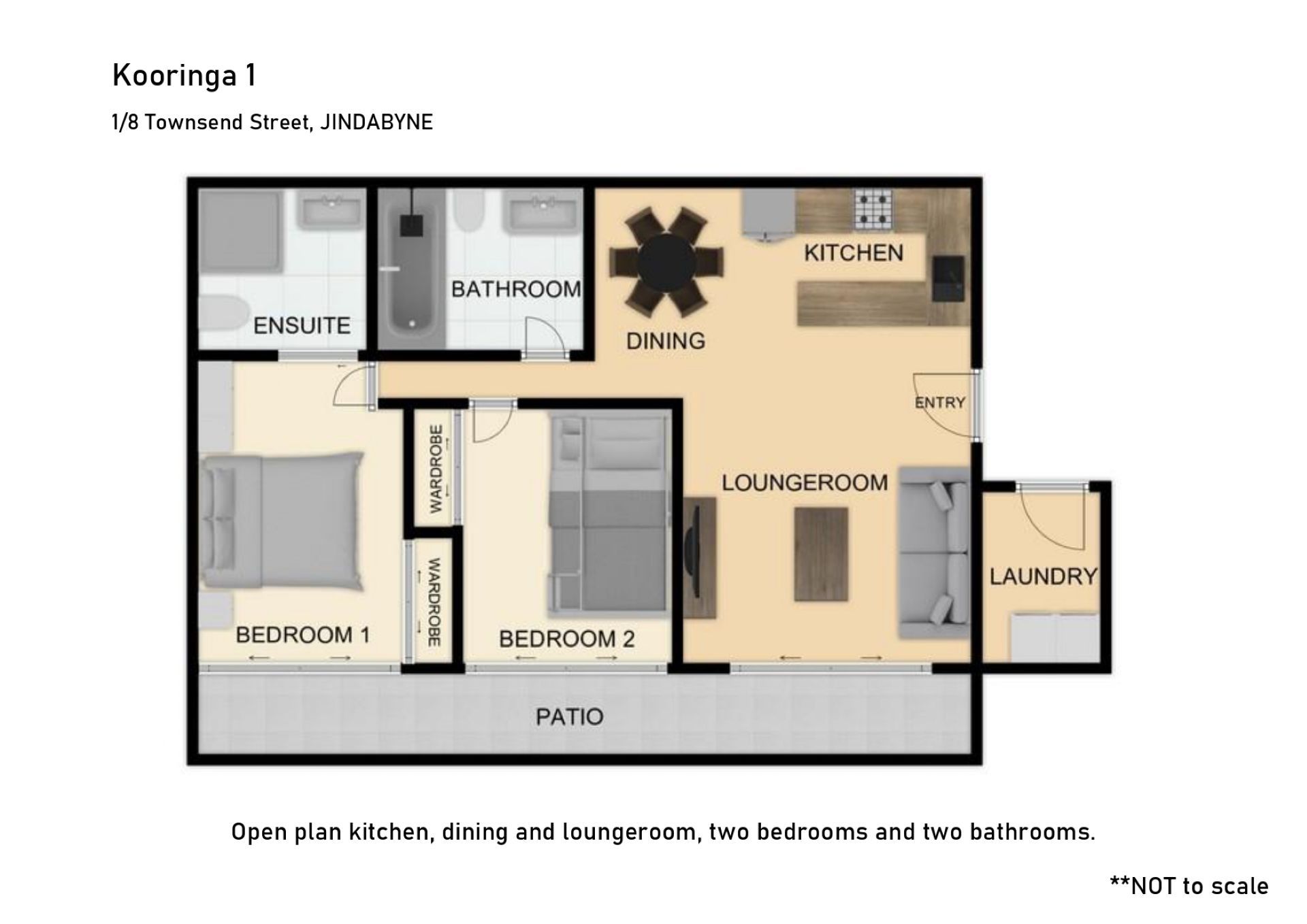 Kooringa 1 is a two bedroom, two bathroom unit located on Townsend Street with views over Lake Jindabyne.