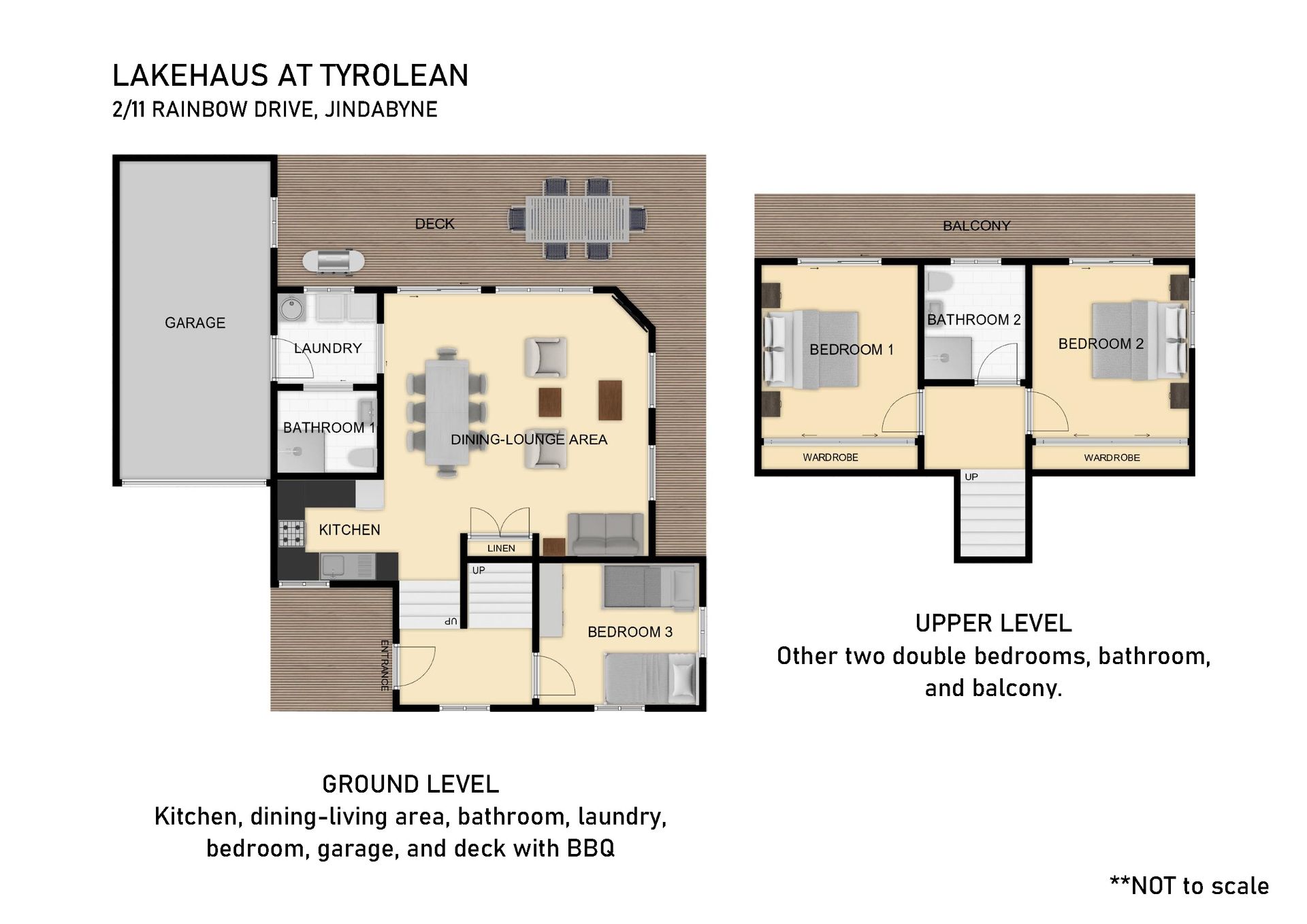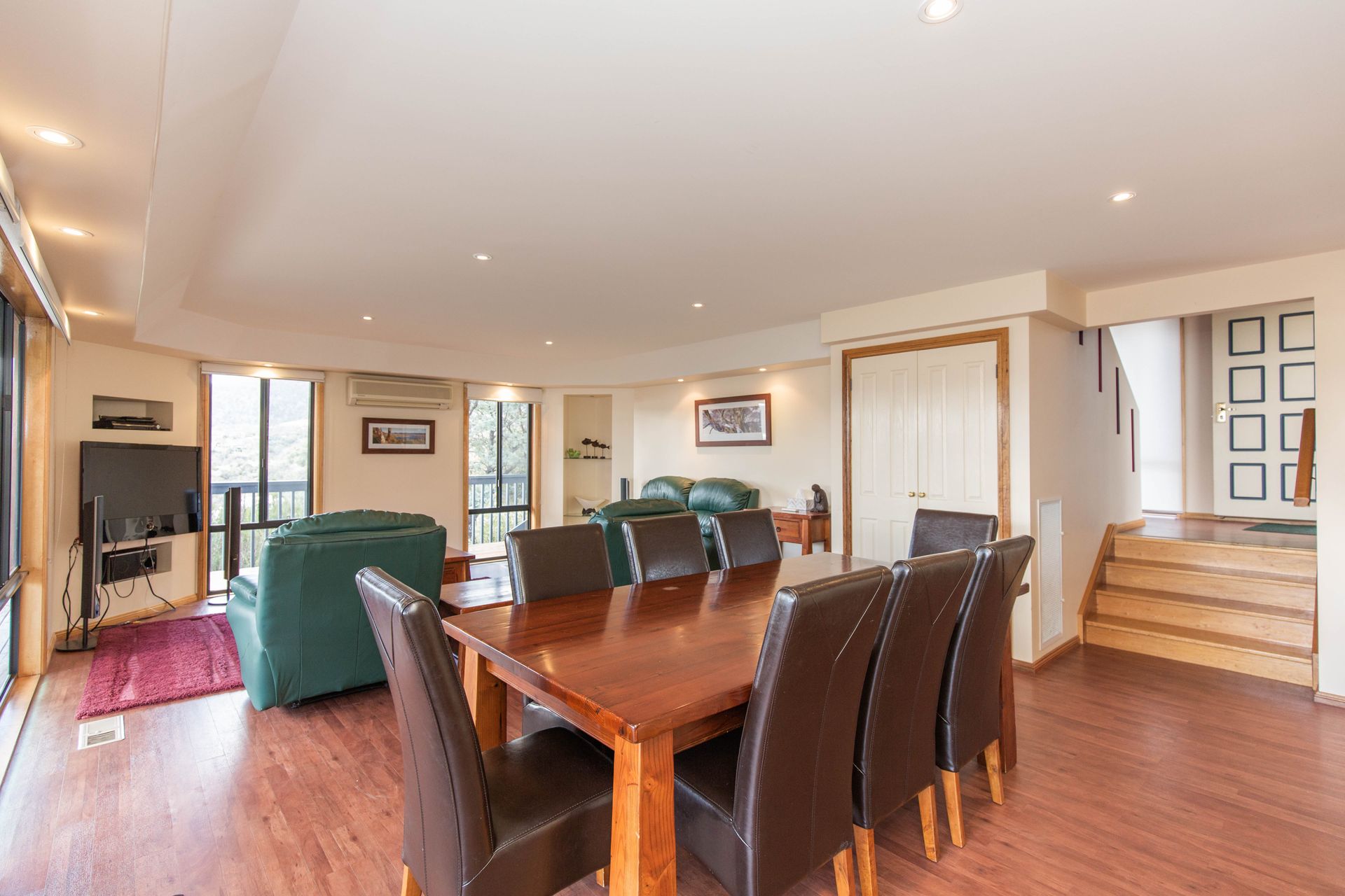 Lakehaus 2 is a open, split level townhouse located in the tranquil Tyrolean Village, just a short drive from Jindabyne Town Center. With three bedrooms and two bathrooms, sleeping up to seven people and a large living and dining area opening up to a private deck, this property is perfect for groups or families for your summer or winter get away.