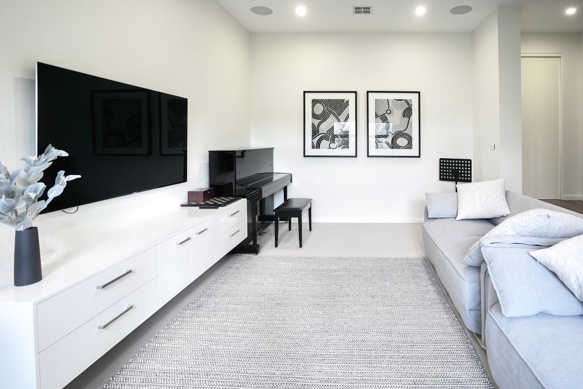 Upon entering the home, you’ll find a separate media room with a piano, perfect for those wanting to relax away from the main living space. For families and groups who love to entertain, the main living area is sure to impress. It features a gourmet kitchen with a walk-in pantry, overlooking the dining area and casual lounge room with ample seating, a gas fireplace, and a large wall-mounted TV.
