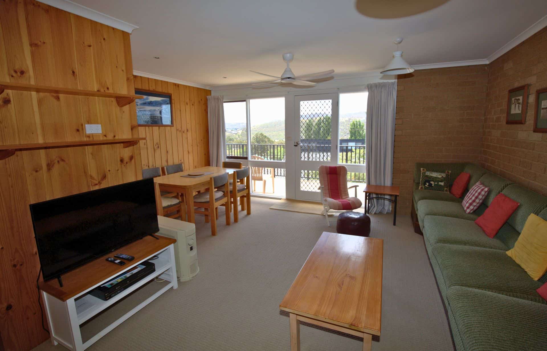 Snowy Saga 3 - cozy, tranquil & homey. Tucked away just off Gippsland Street sits Snowy Saga 3, a two bedroom, one bathroom unit with stunning views of Jindabyne. This warm and welcoming retreat is the ideal base for your next snow adventure or summer mountain-bike getaway. With beautiful leafy views and a comfortable, homey feel, it’s a relaxing haven to return to after a day exploring our beautiful town.