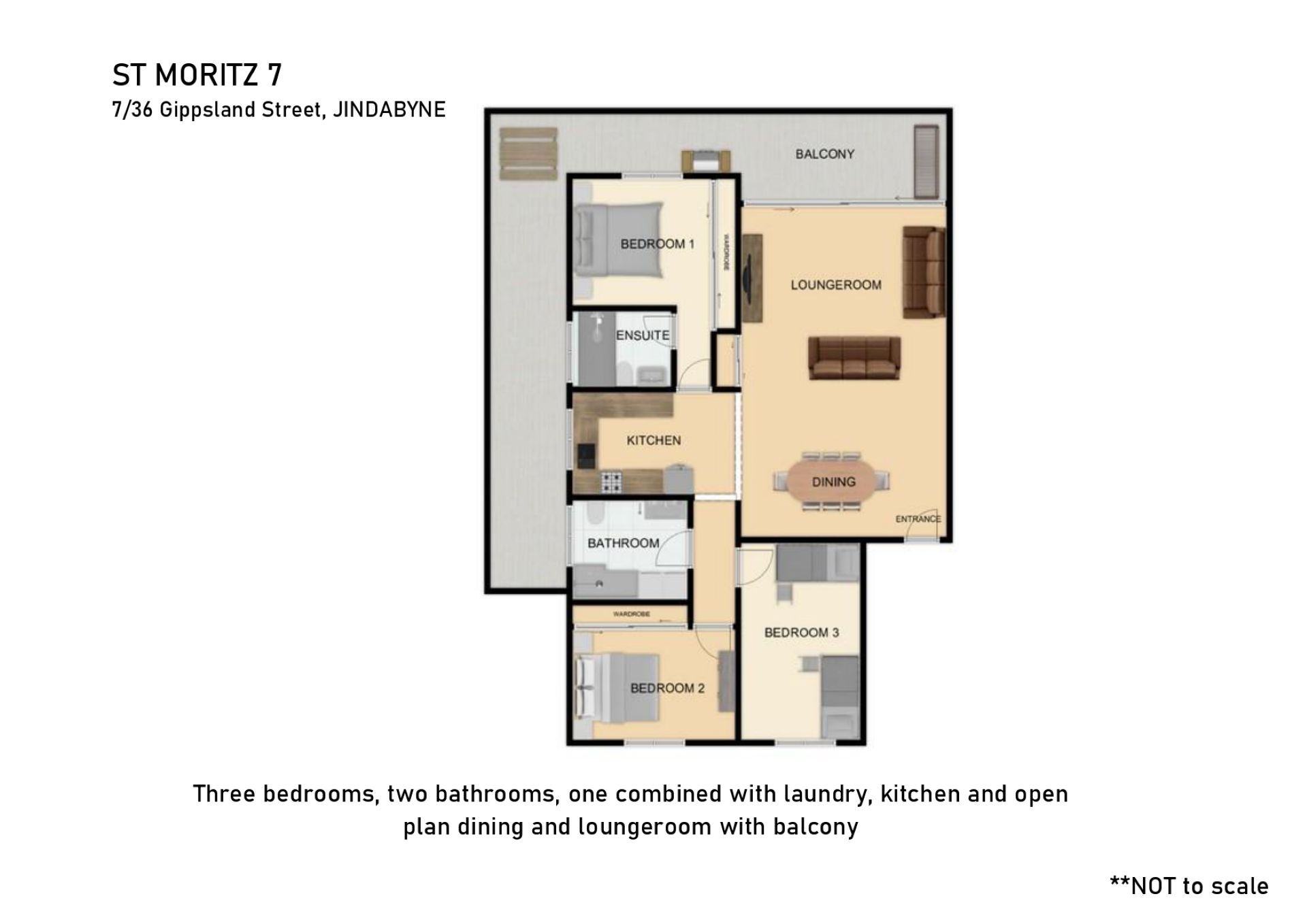 This three bedroom, two bathroom, self contained apartment is perfect for families or groups looking to enjoy the Snowy Mountain area. The main bedroom had a queen bed, a large built in wardrobe and an ensuite. The second bedroom has a queen bed, built in wardrobe and the third bedroom has two bunks that sleeps 4 guests. All bedrooms have electric heaters to stay warm through the night. The main bathroom is combined with the laundry with washing machine and dryer for your convenience.