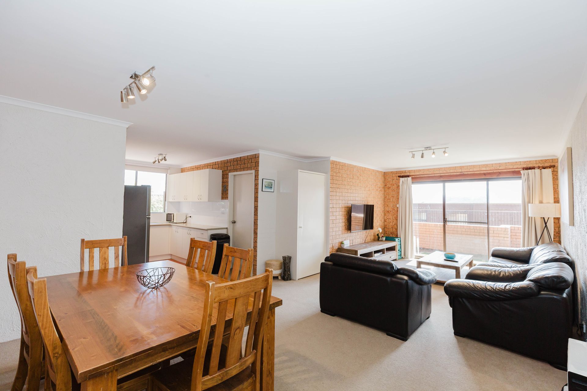 The open living space leads out onto the North facing balcony with BBQ and seating to enjoy the afternoon sun and outlook from above.