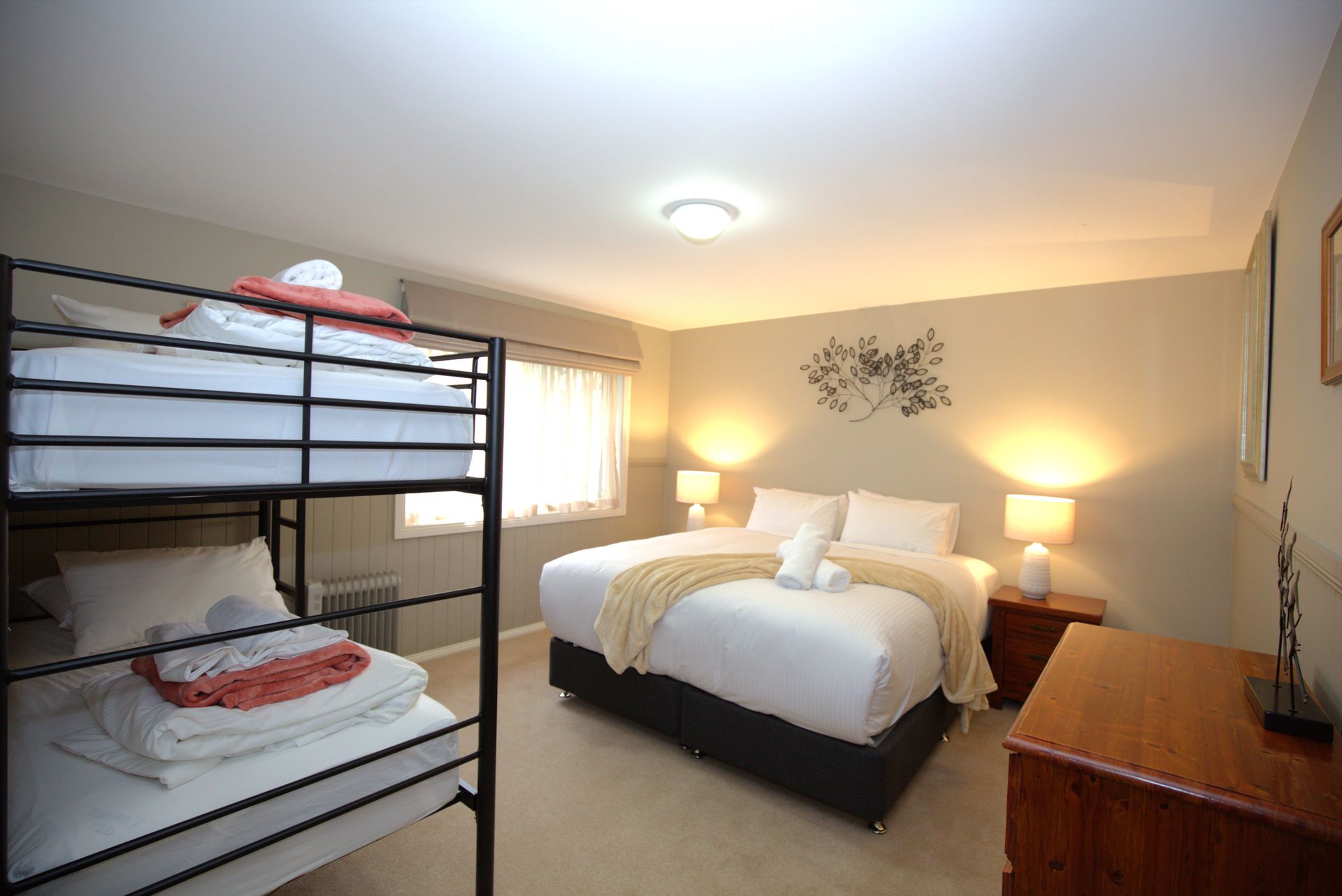One room has a king bed (which can be split by request at time of booking), one rooms with two king singles (which can be made into a king by request at time of booking) one room with a queen and bedroom four as a King bed (which can be split by request at time of booking) and a set of single bunks.